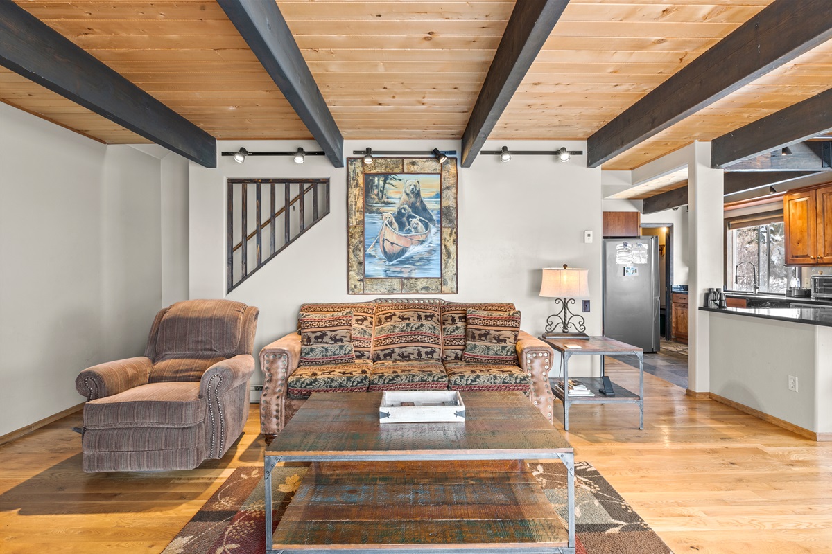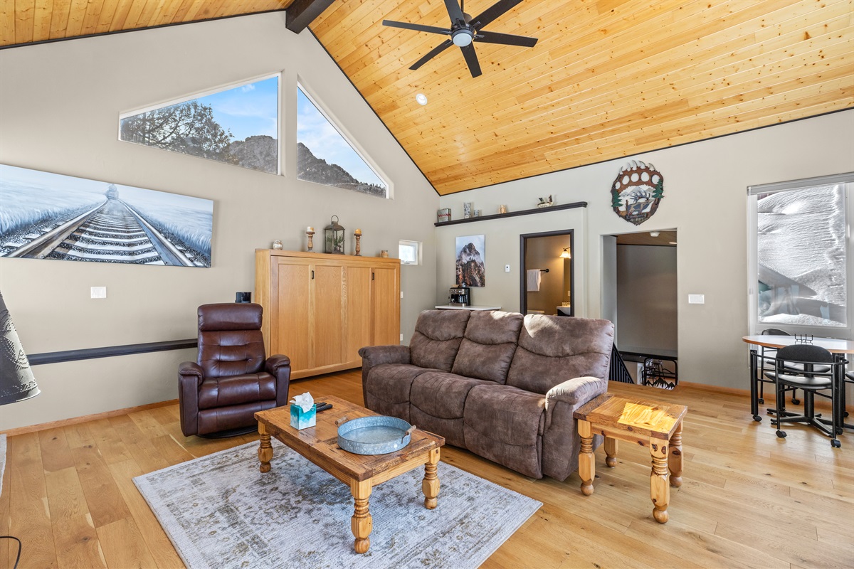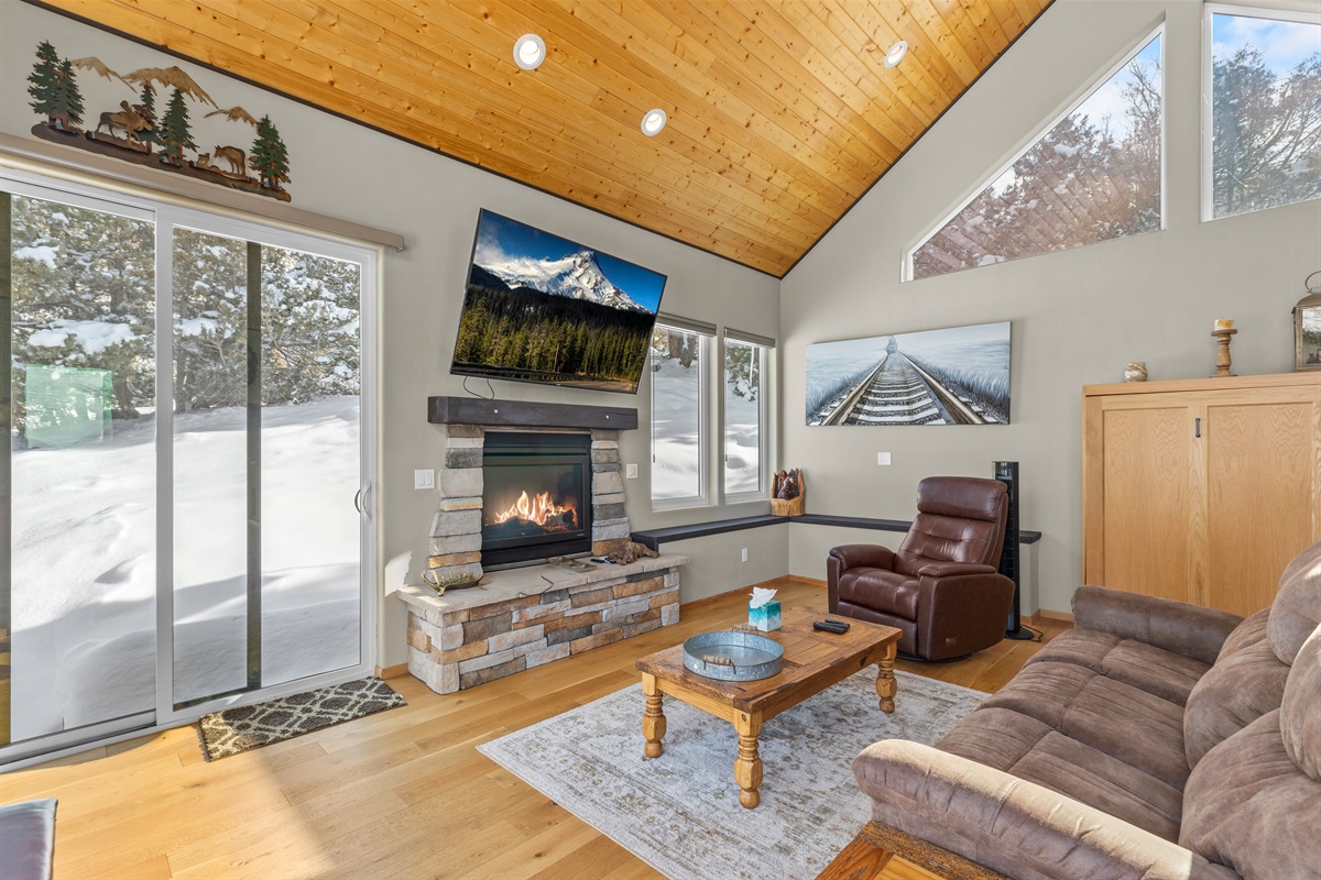 This spacious home offers warm mountain character, comfort, and privacy. Large windows fill the house with natural light while framing stunning scenery.