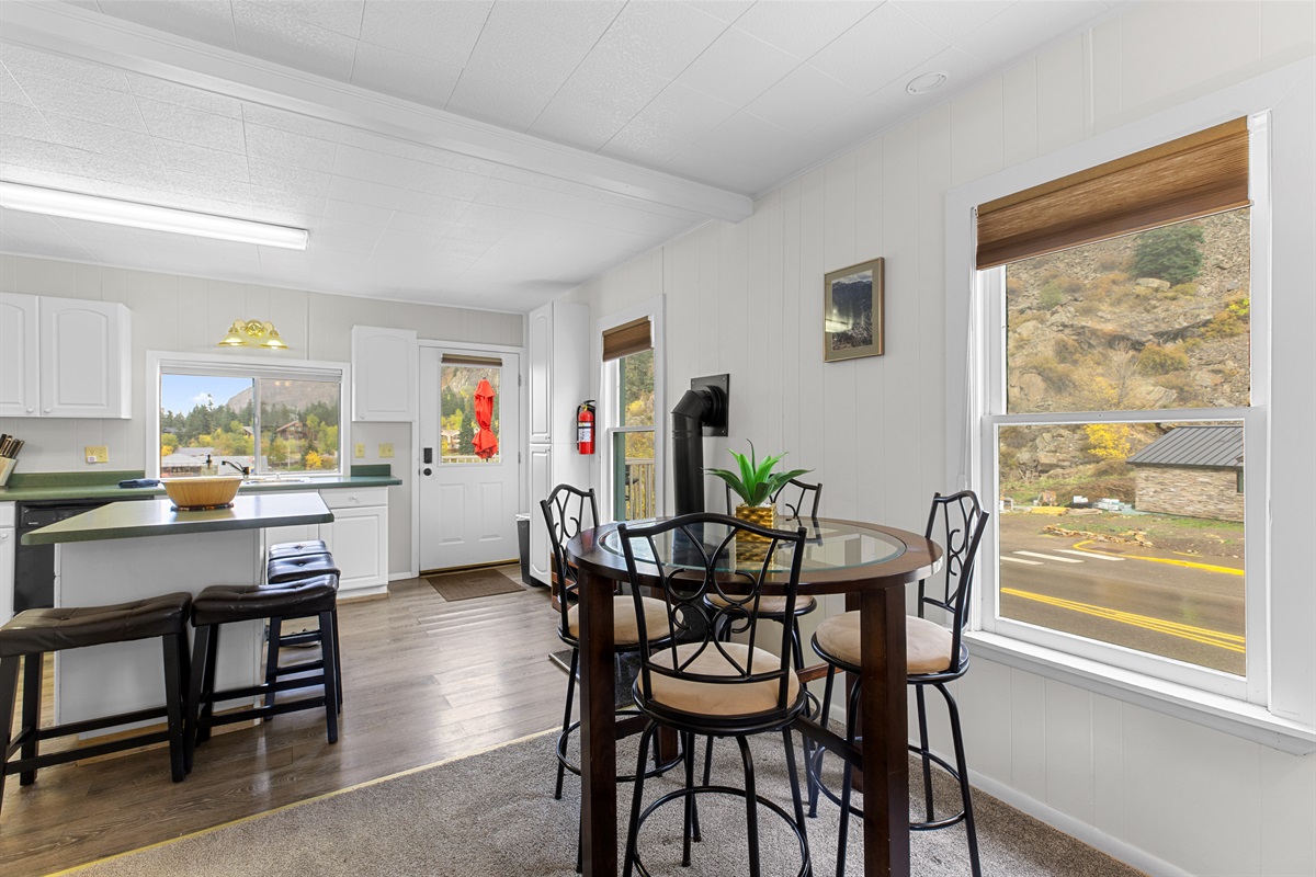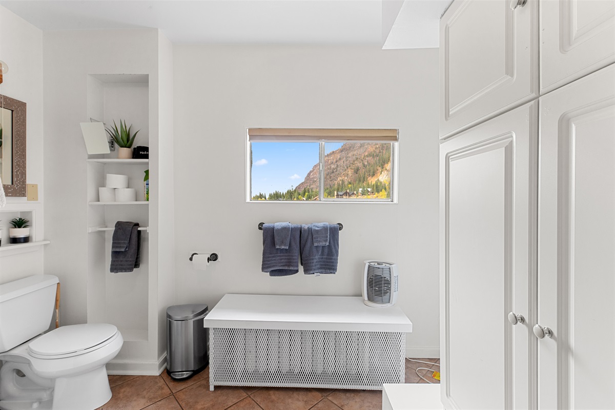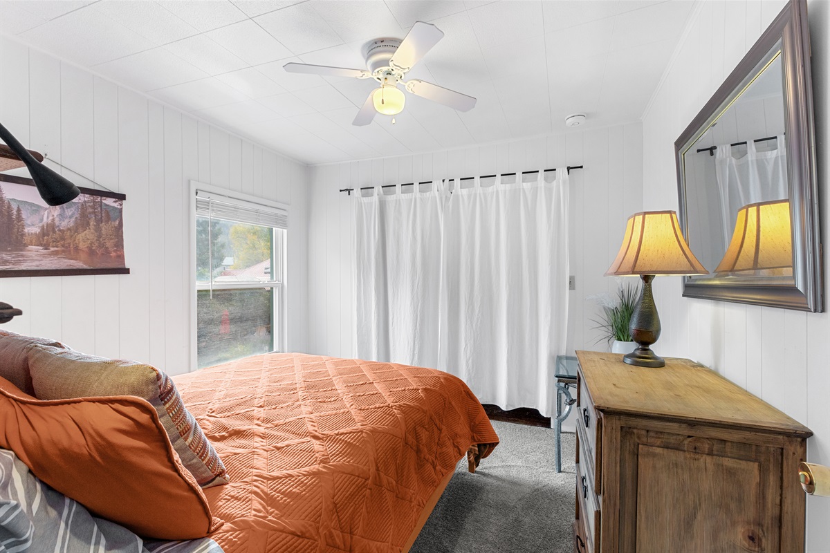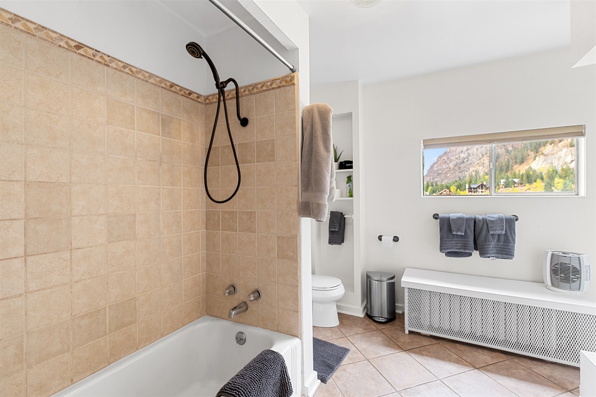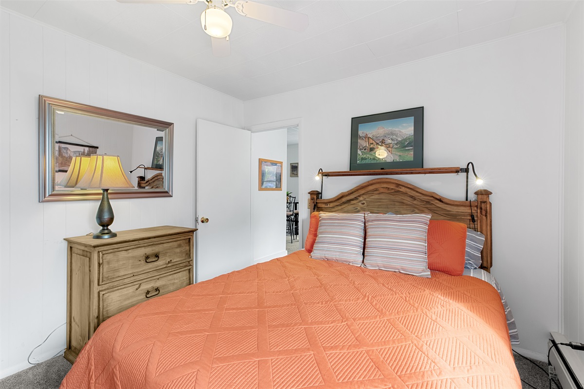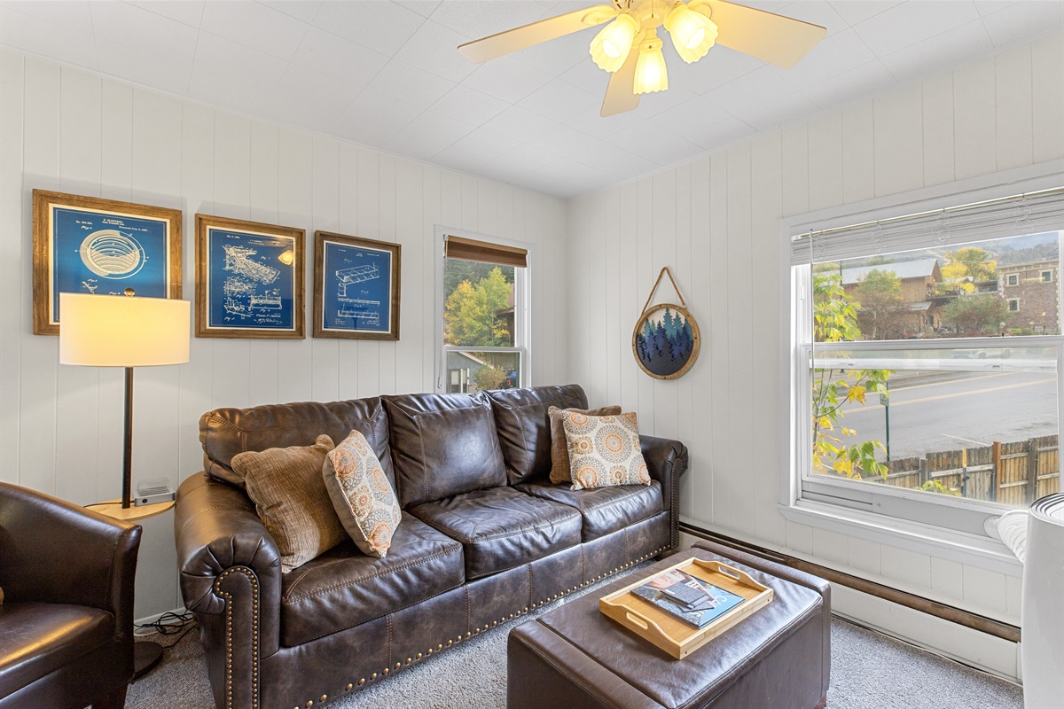 Wake up to mountain views, grazing deer, and golden alpine sunsets, all just steps from trails, parks, and downtown Ouray. The windows bathe the room in natural light and offer stunning views of the surrounding mountains. It is straight across from Felin Park and Ouray Hot Springs!