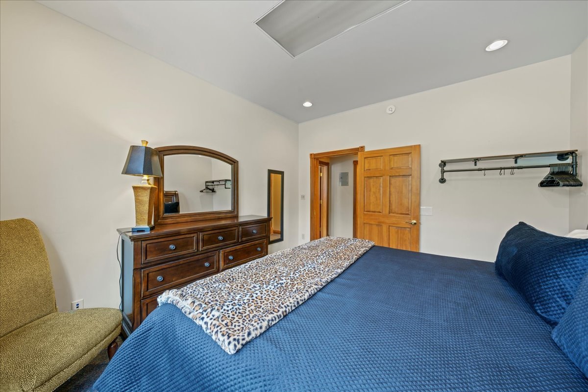 Our cozy bedroom features a plush king -sized bed, adorned with premium linens, ensuring a peaceful night's rest.