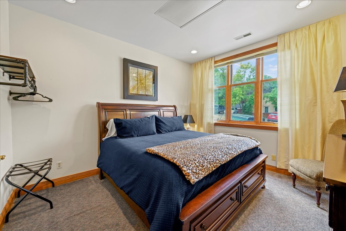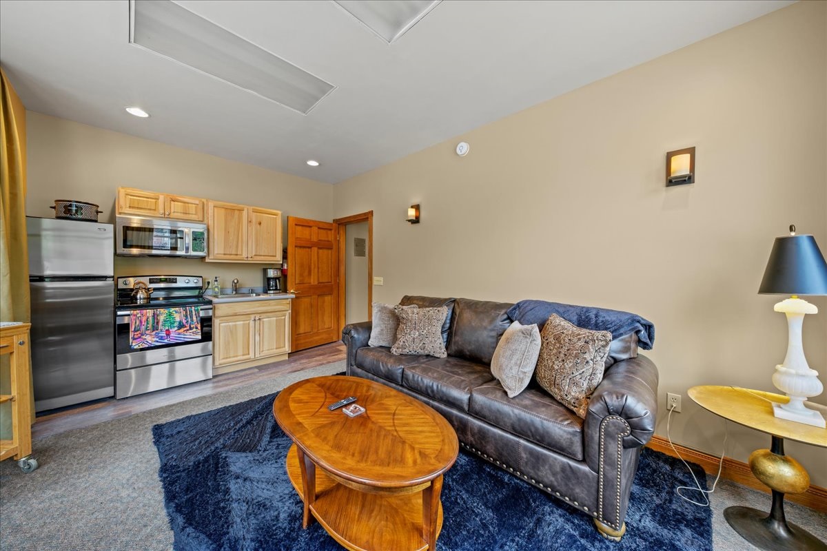 Upon entering our condo, you'll be greeted by a warm, inviting atmosphere combining modern luxury with rustic mountain aesthetics. The open-concept living/ dining/kitchenette area has breathtaking views of the town and the mountains. The room is flooded with natural light, creating a welcoming ambiance for relaxation and enjoyment.